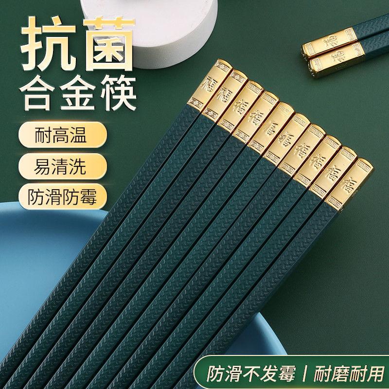 双枪合金筷子家用高档新款 抗菌防霉精品家庭耐高温2025热销榜10双