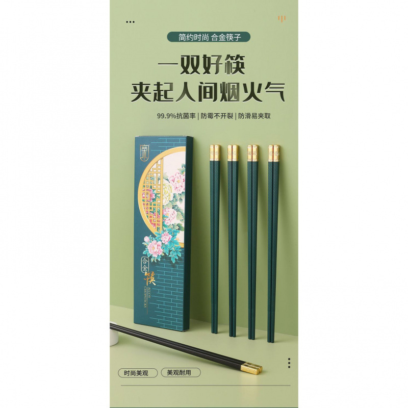 高档家庭合金筷子无漆不易发霉抗菌耐高温防霉餐厅防滑 五双装
