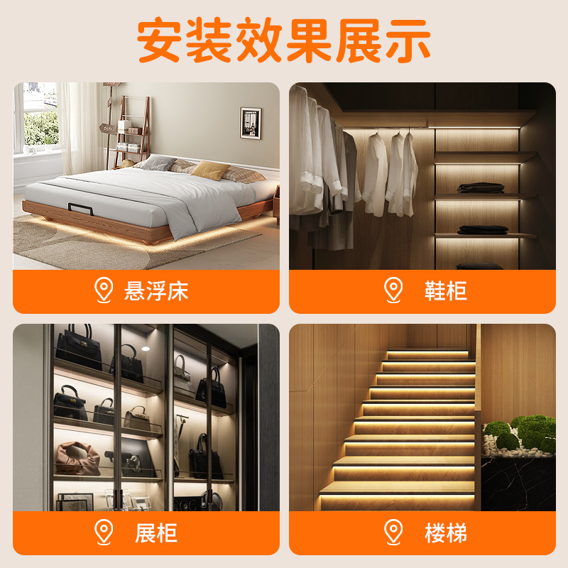 人来即亮充电人体感应灯夜间自动感应灯带过道入户门灯免布线灯条