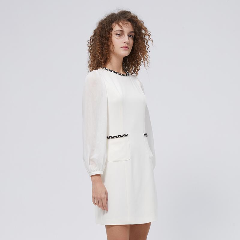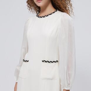 25年春夏新款 拼接撞色连衣裙朗黛商场同款 005N 小香风长袖 MYMO法式
