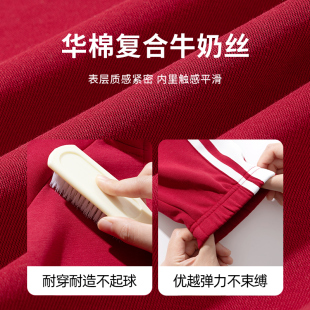 新年红卫衣运动套装 ER条纹撞色开衫 校园风运动服定制 明星同款
