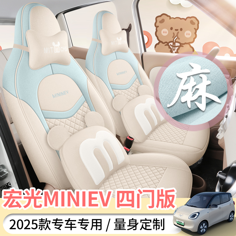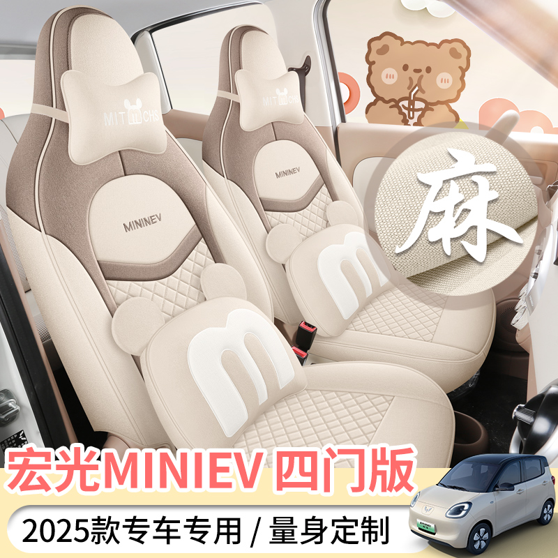 全包坐垫布座椅套 专用亚麻汽车座套四季 25款 五菱宏光miniev四门版