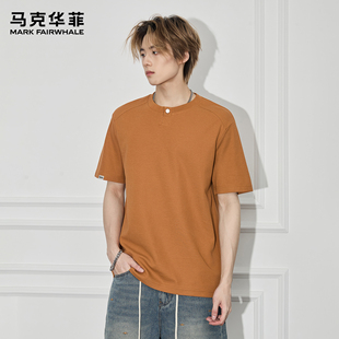 纽扣简约圆领体恤 t恤男潮流ins复古凉感宽松半袖 马克华菲夏季 短袖