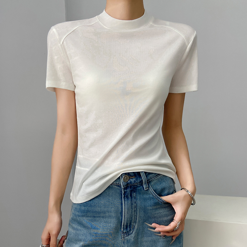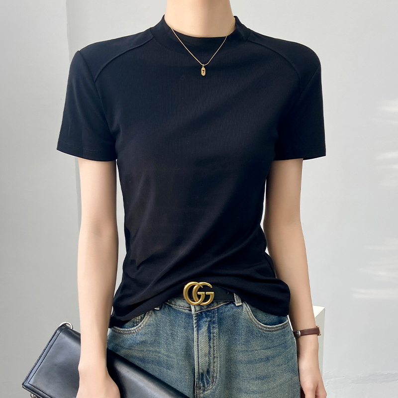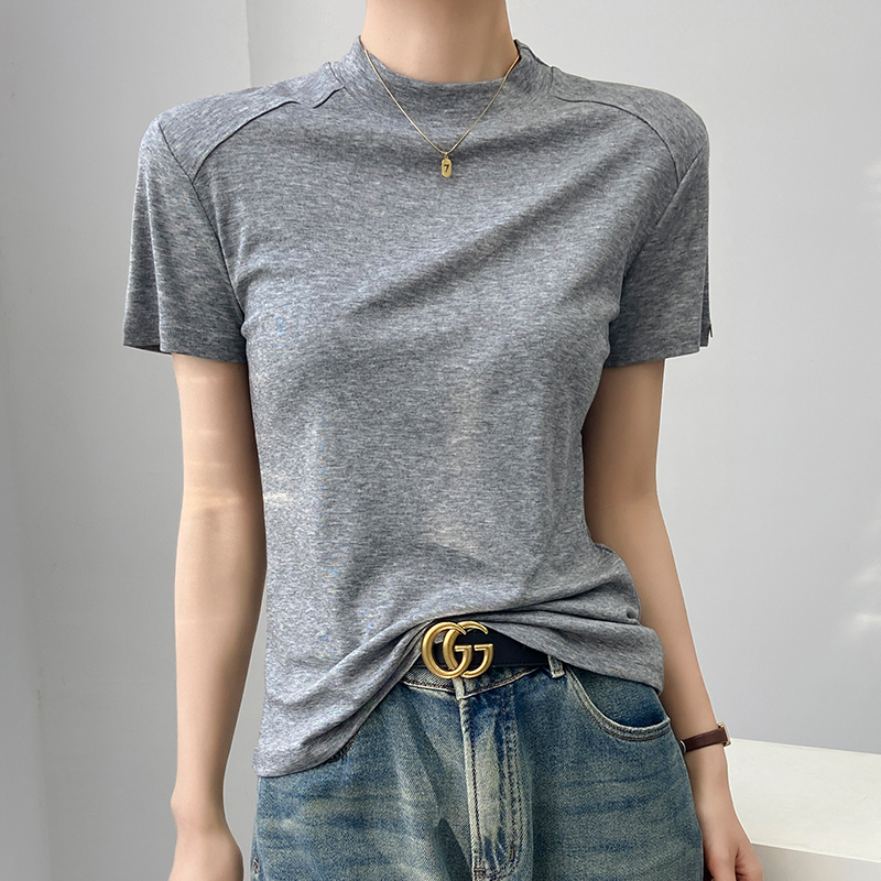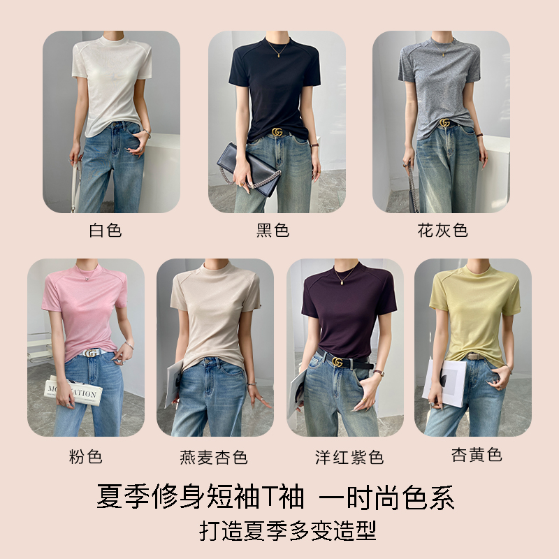 立领莱赛尔天丝羊毛短袖 高端面膜上衣轻奢高级感薄 t恤女2025新款