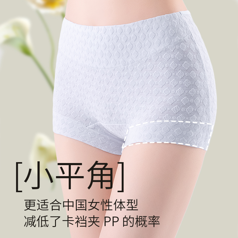 冰丝加长纯棉抑菌裆透气中腰女士四角裤 猫人无痕平角内裤 女超薄款