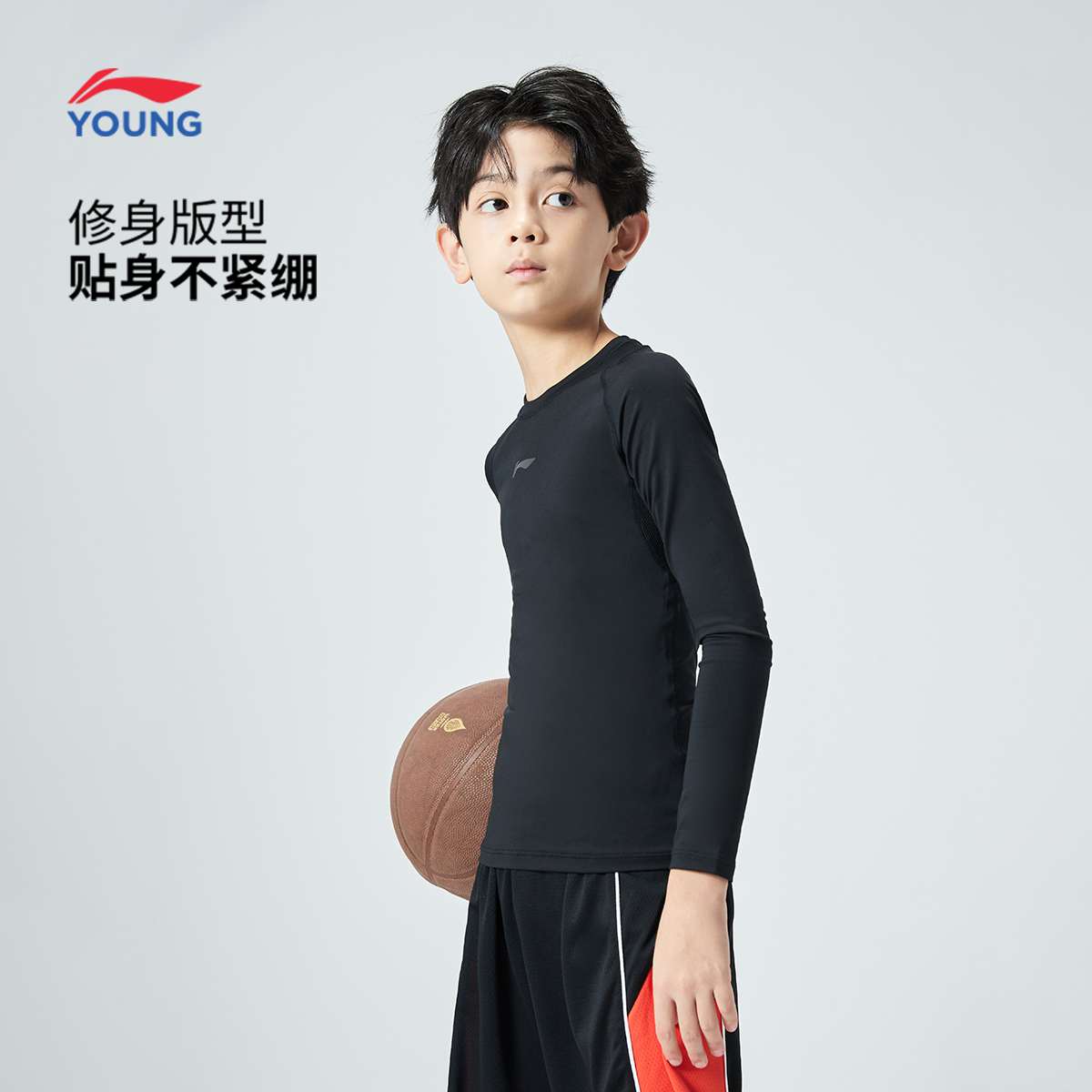 上衣弹力针织童装 李宁童装 秋季 篮球系列长袖 健身衣男大童2025新款
