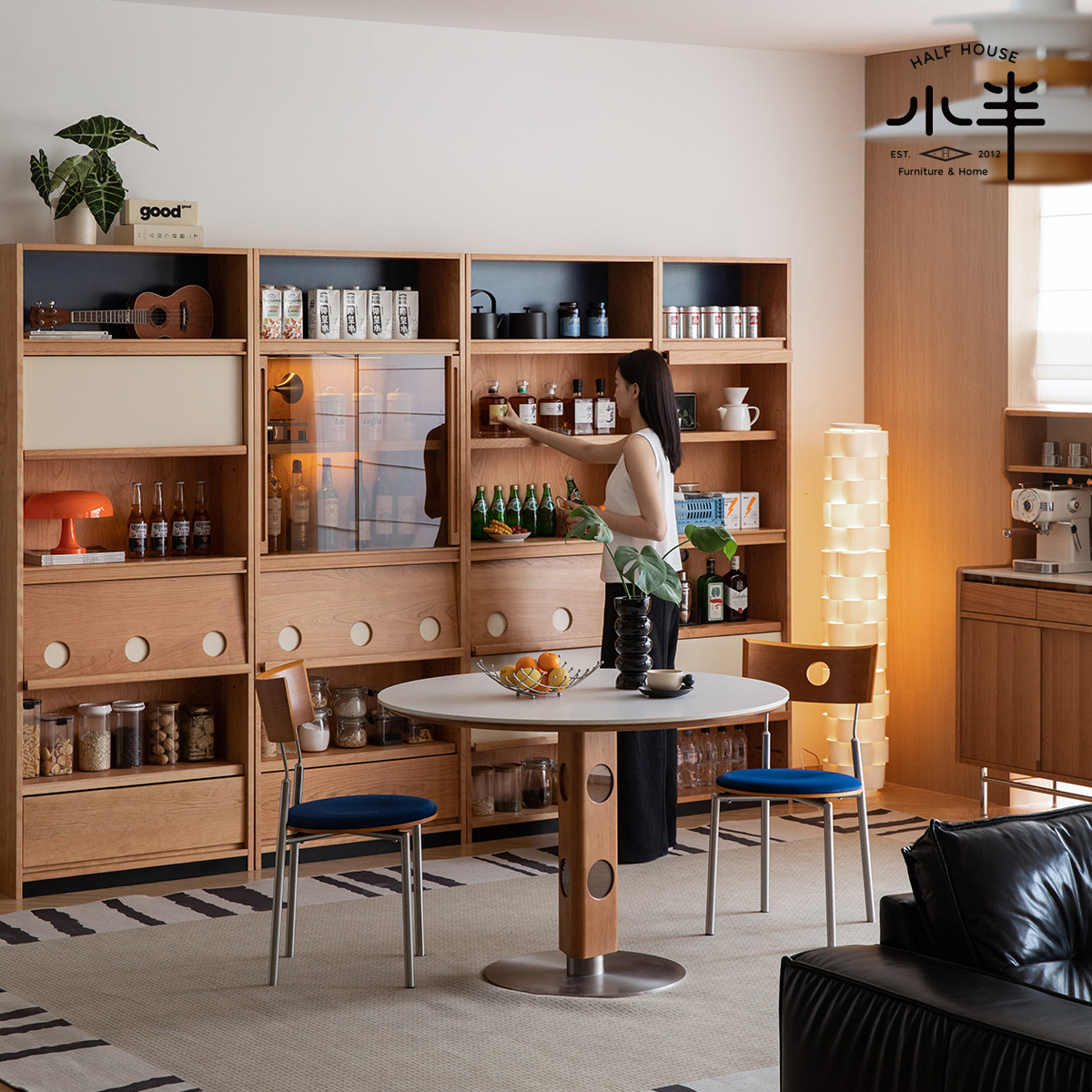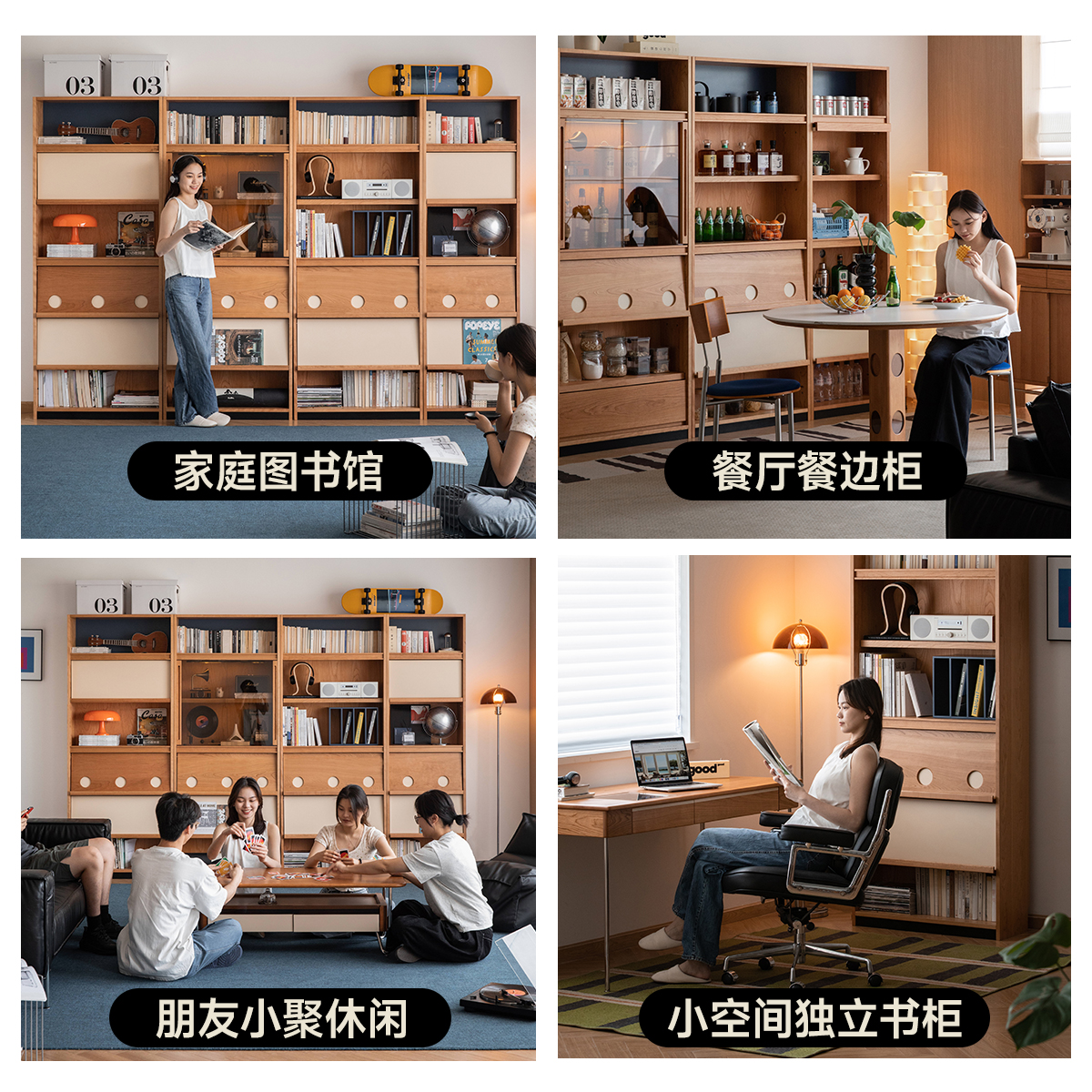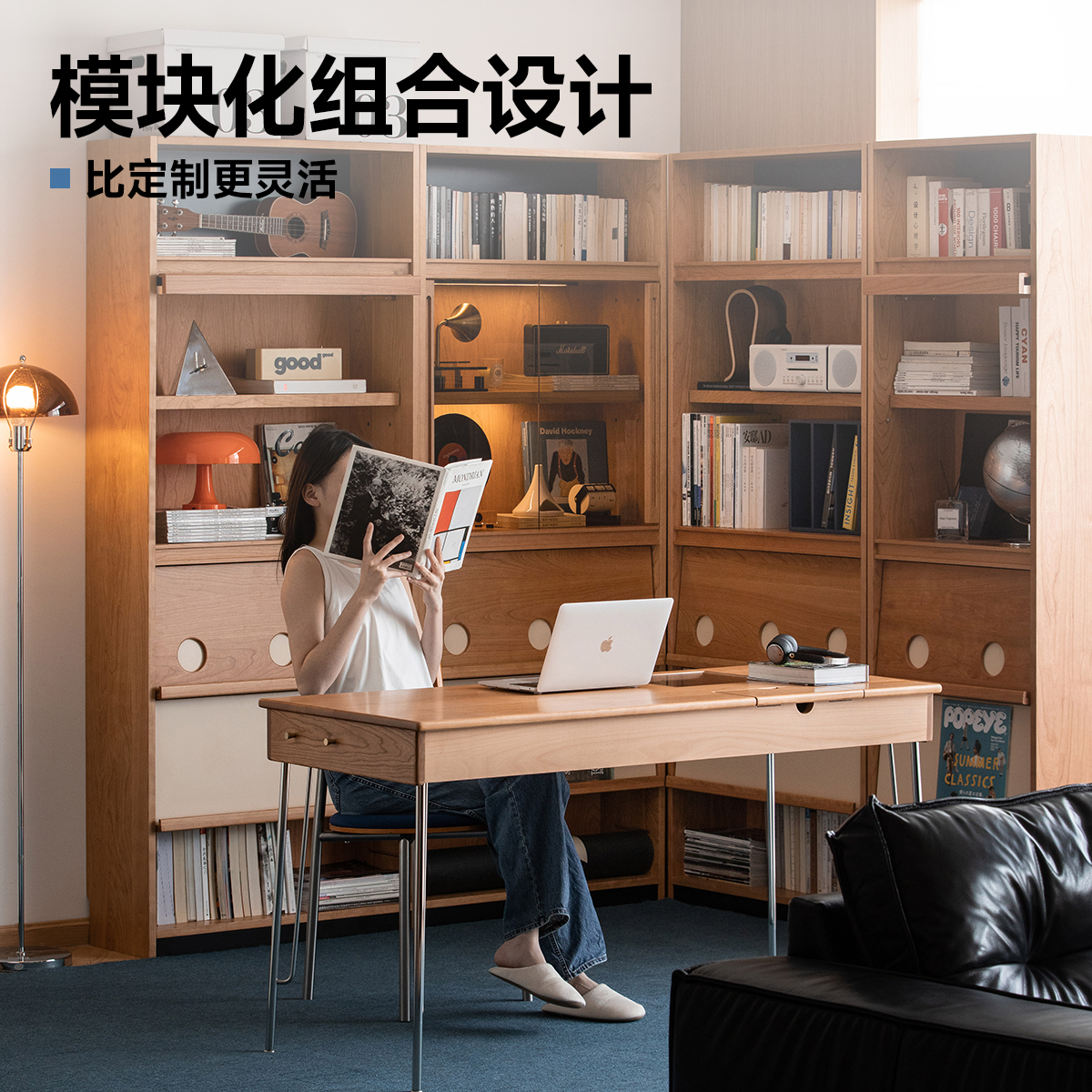 出乎生活时光满墙书柜北欧樱桃木展示柜自由组合柜客厅满墙收纳柜