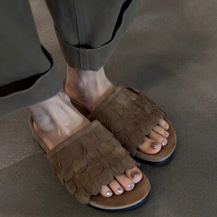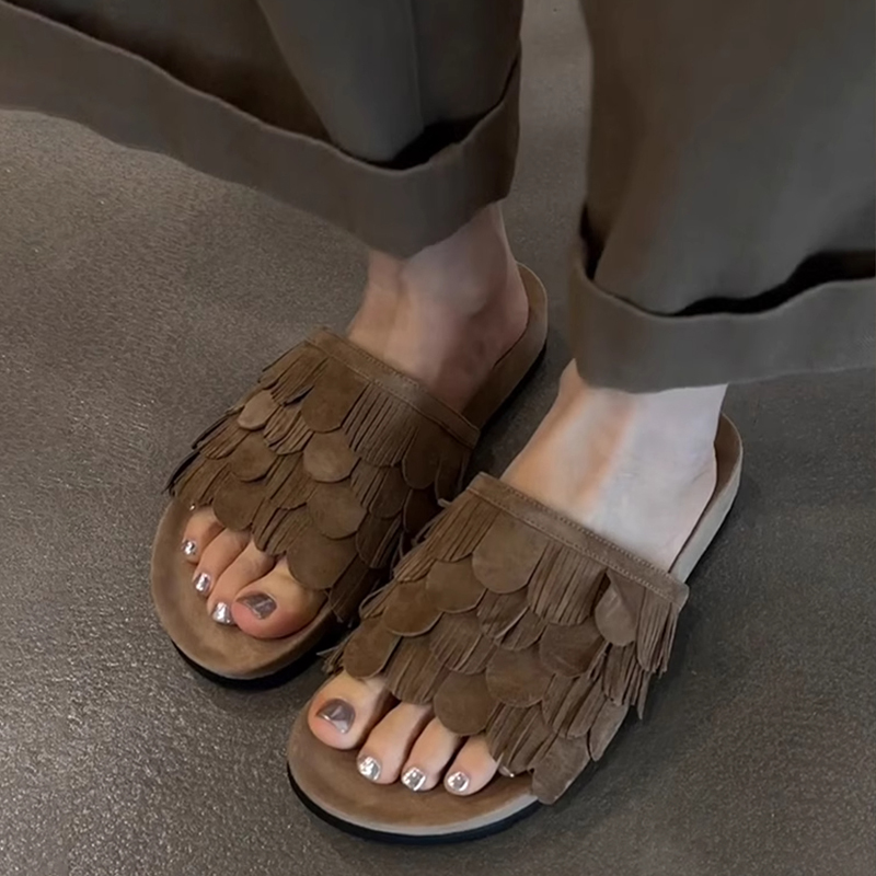 防滑平底一字拖凉拖鞋 复古流苏小众软底厚底拖鞋 女夏外穿2025新款