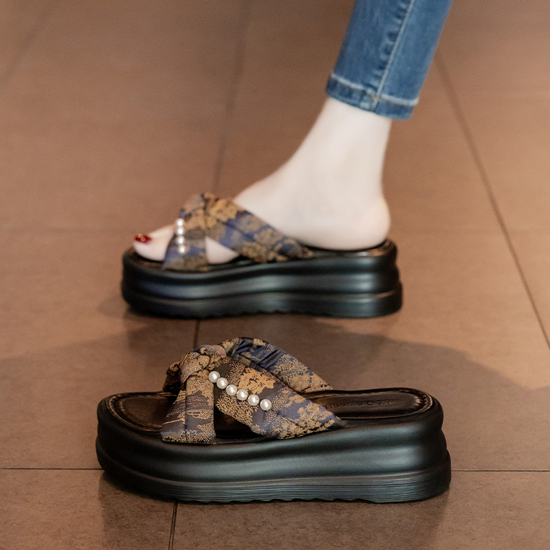 松糕厚底配裙子海边度假沙滩凉鞋 外穿2025新款 女夏季 小香风凉拖鞋
