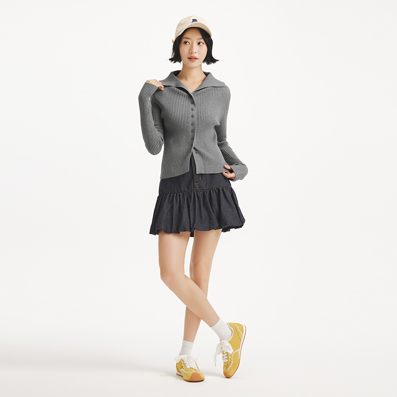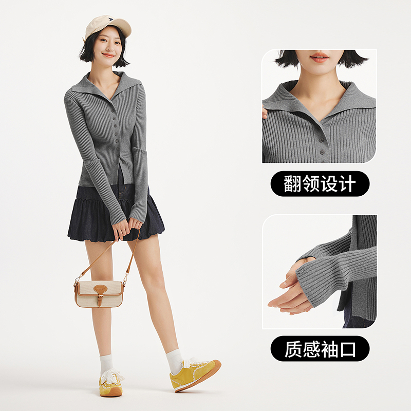 热风2025年秋季 显瘦长袖 新款 修身 上衣 女士翻领针织衫 miu系针织衫