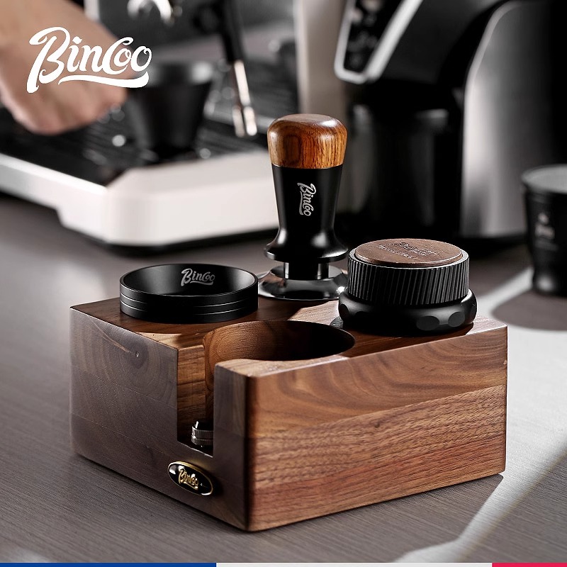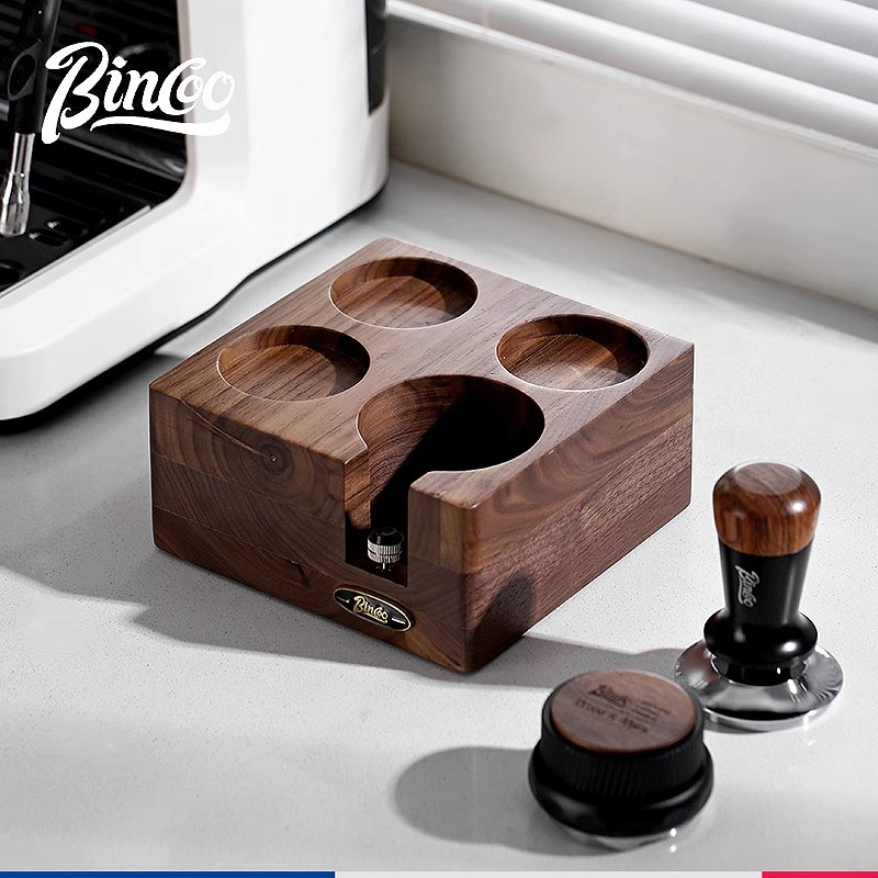 58mm通用 工具51 Bincoo胡桃木意式 咖啡压粉四孔底座布粉压粉套装