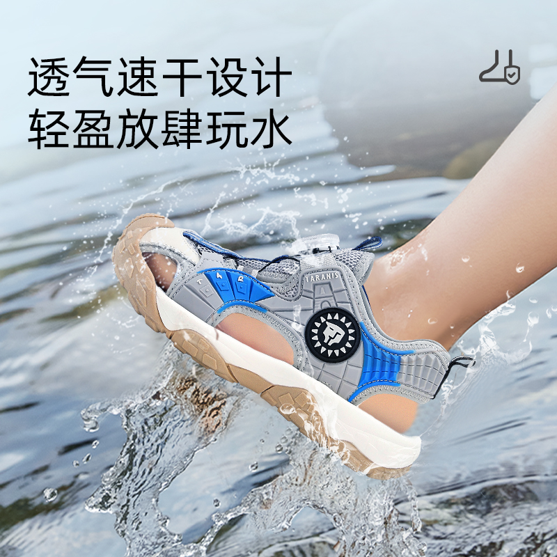 男女童旋转钮扣鞋 泰兰尼斯儿童夏季 中大童透气涉水沙滩鞋 凉鞋 新款