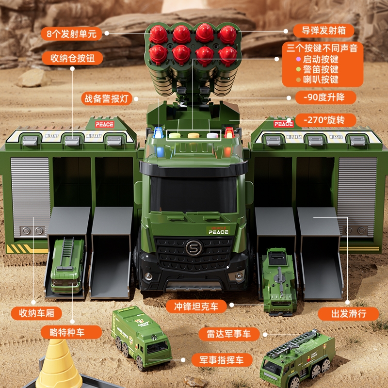 儿童导弹玩具超大号卡车变形弹射轨道合金军事汽车男孩生日礼物