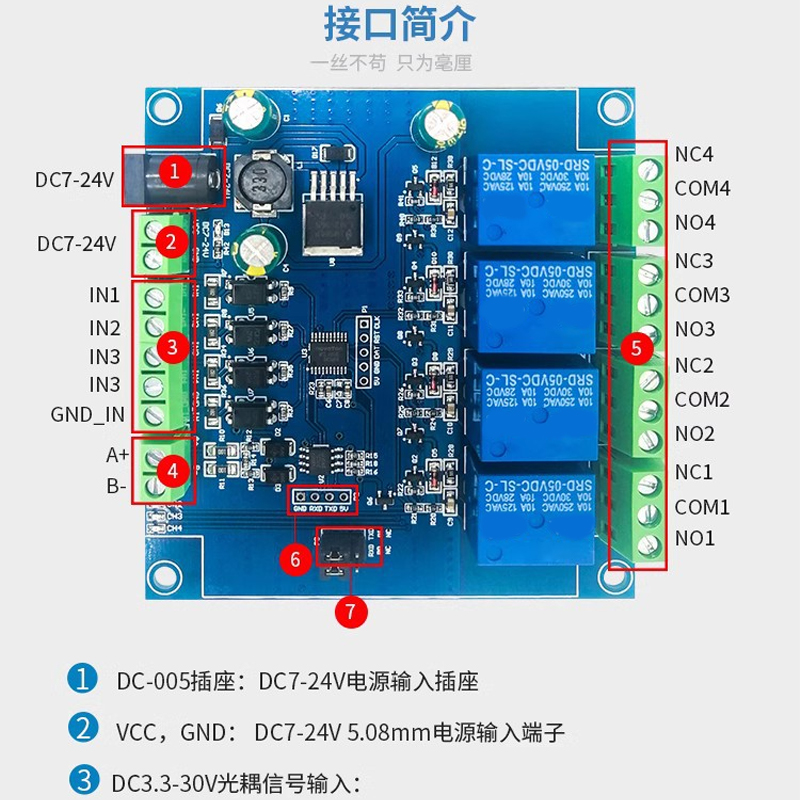多路继电器模块2 8路支持RS485 Modbus DC7 单路 rs232 24V RTU