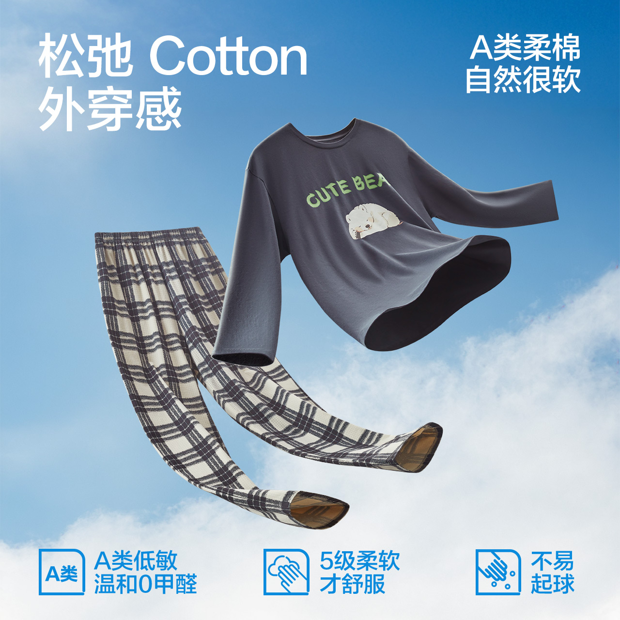 简约全棉高级感可外穿圆领家居服套装 春秋款 睡衣男士 猫人纯棉长袖