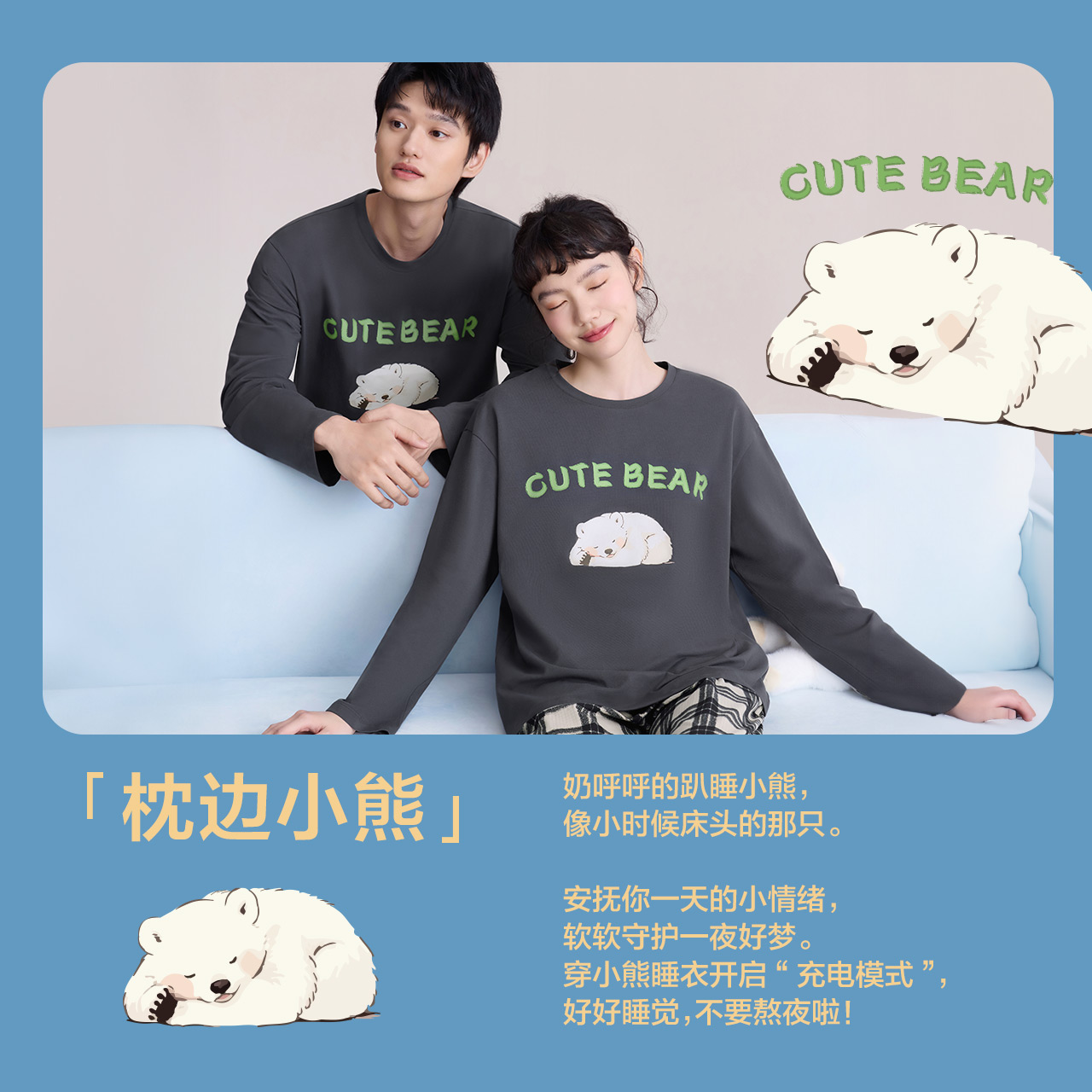 7A抗菌 长袖 有棵树情侣睡衣男士 套装 防螨磨毛女生家居服 秋冬季
