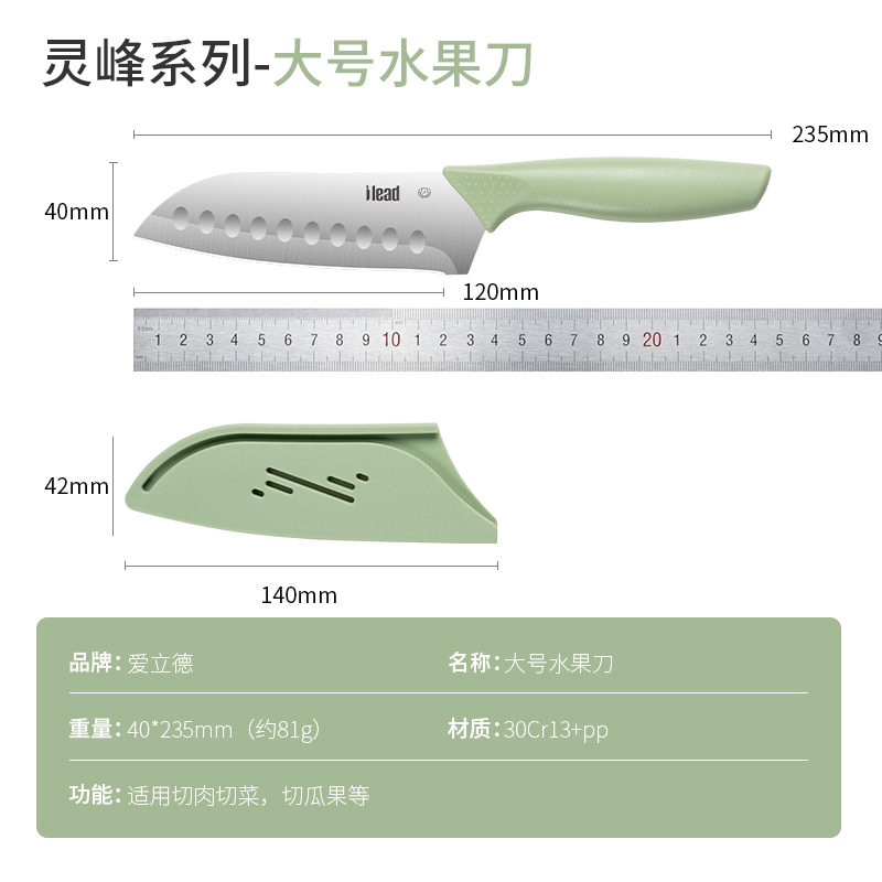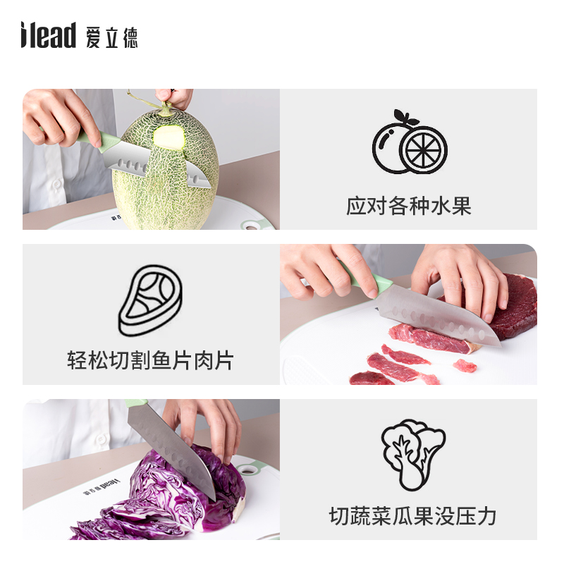 爱立德水果刀厨房不锈钢小厨师刀菜板套装 家用大号瓜果刀切菜刀具