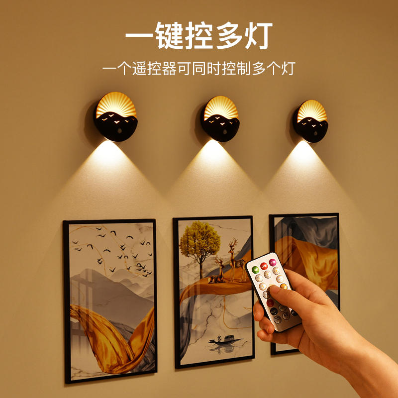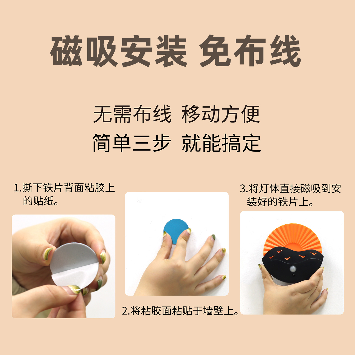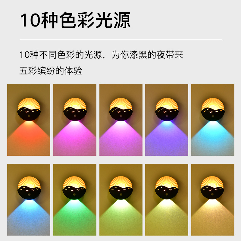 日出日落夕阳壁灯免接线免打孔免布线贴墙感应氛围高级充电款 射灯