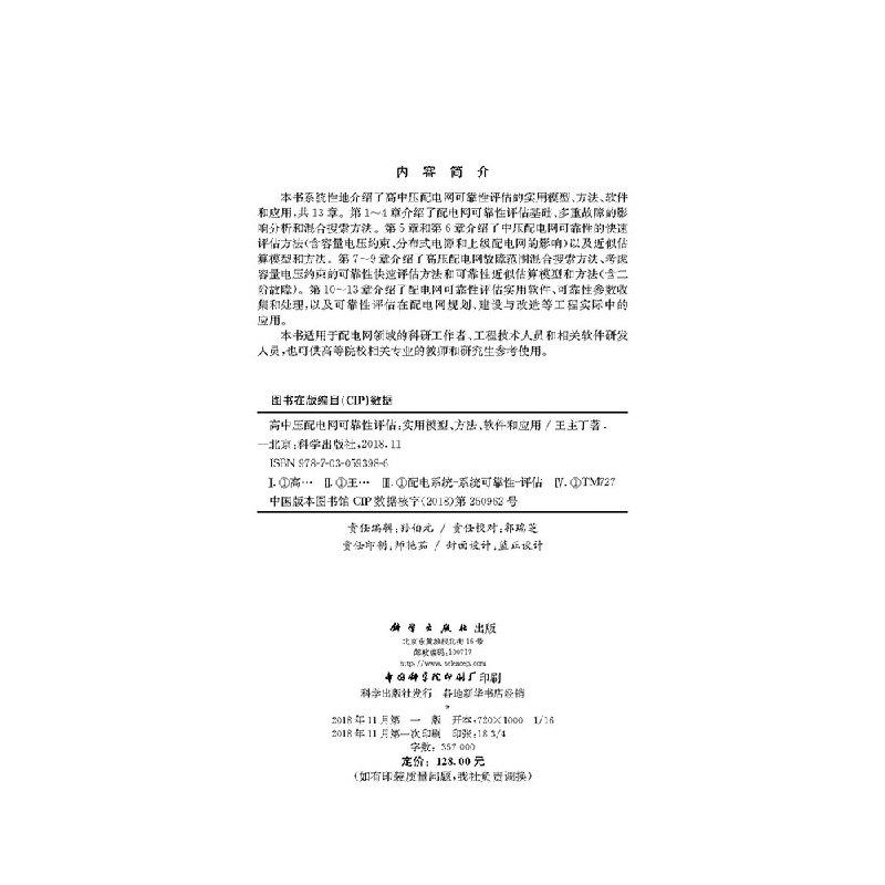高中压配电网可靠性评估——实用模型 科学出版 方法 王主丁 社 软件和应用 全新正版