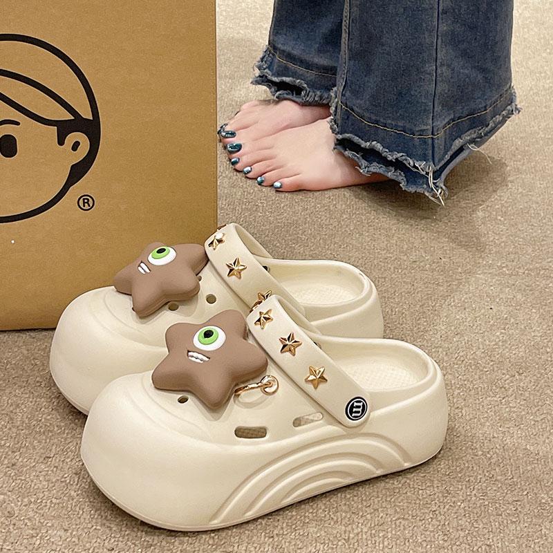 外穿防滑厚底增高包头沙滩可爱五角星铆钉洞洞鞋 时尚 女夏季 凉拖鞋