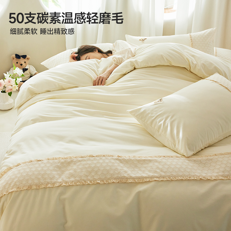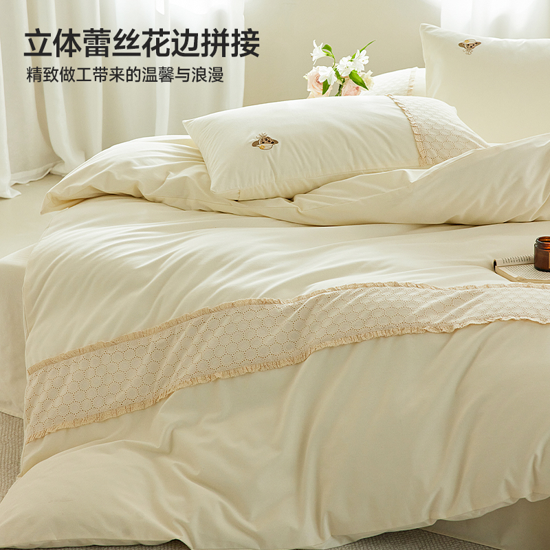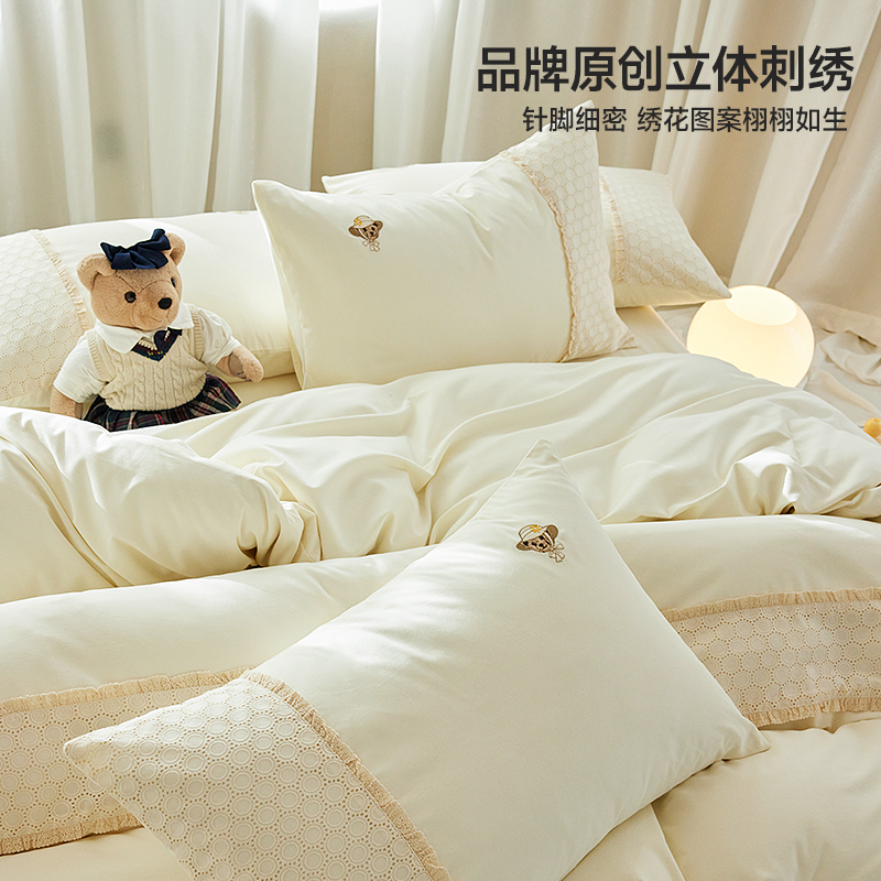 TeenieWeenie法式 磨毛刺绣四件套全棉纯棉小香风花边被套床单床笠
