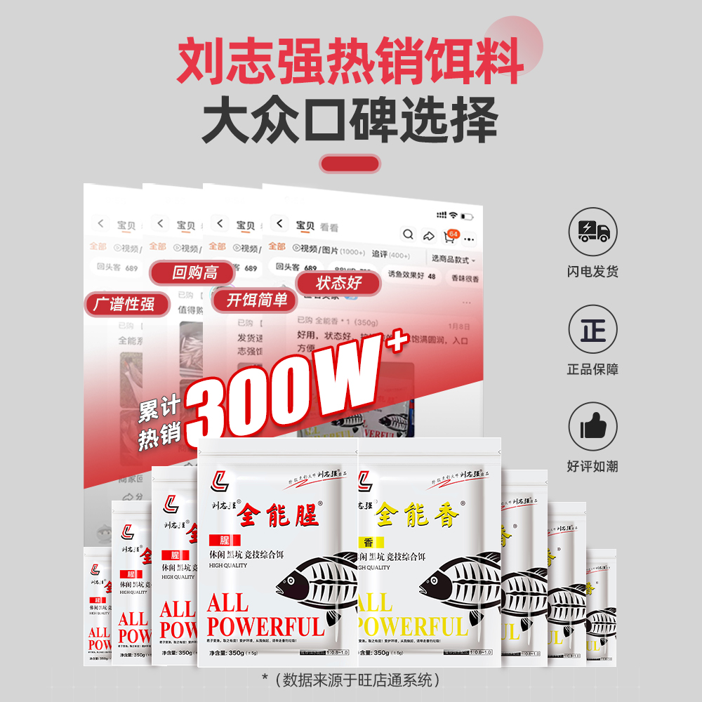 正品 刘志强全能香全能腥钓鱼饵料一包搞定野钓鲤鲫鱼综合台钓饵料