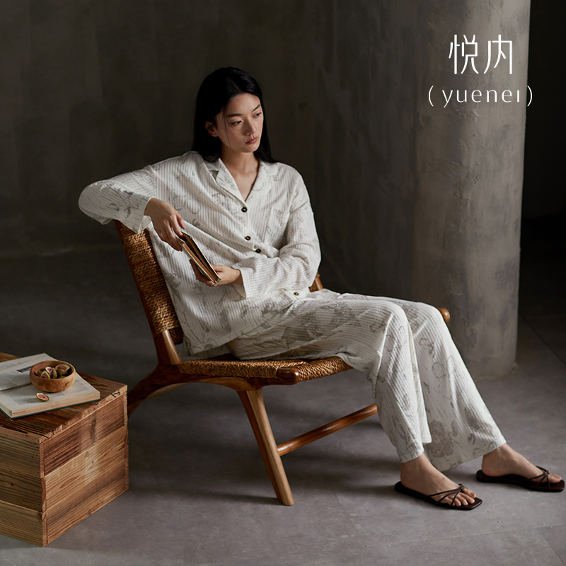 长袖 全棉大码 套装 女款 家居服 简约休闲秋季 芬腾春秋睡衣女纯棉开衫