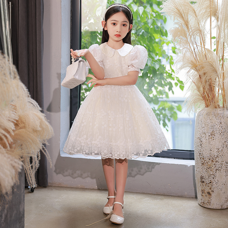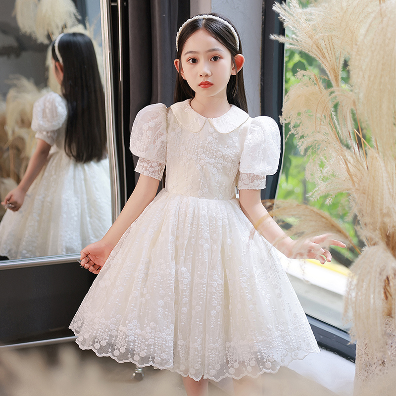 女童生日公主裙高端花童小女孩婚礼儿童主持人钢琴演奏晚礼服白色