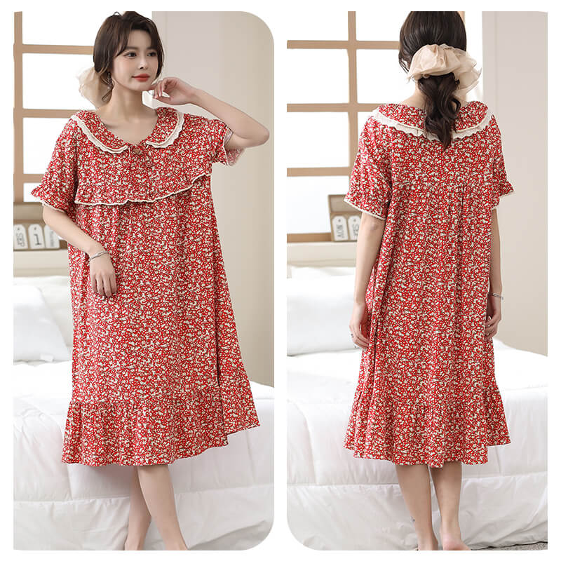 可爱睡衣家居服全棉女款 芬腾睡裙女士夏季 纯棉大码 短袖 连衣裙 薄款