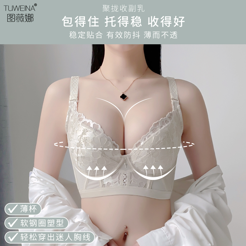 图薇娜调整型内衣大杯大胸显小薄款 显瘦内衣 文胸防下垂防凸点大码