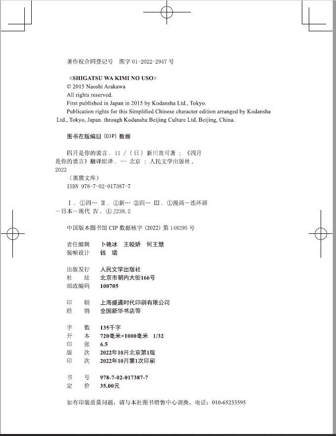 有马公生花江夏树 社 四月是你 人民文学出版 ANIPLEX讲谈社 宫园薰种田梨沙 豆瓣9.0原作漫画简体中文 新川直司 谎言11 包邮 正版
