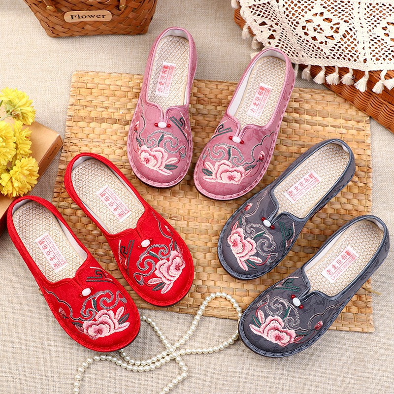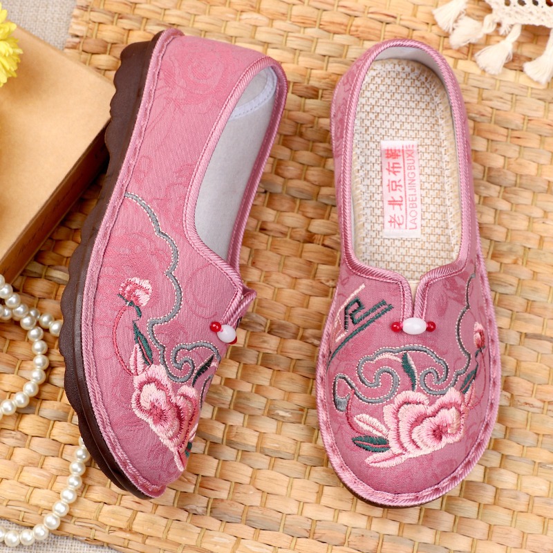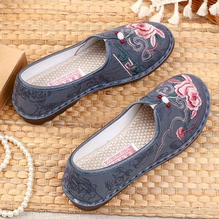 平底复古风中老年妈妈浅口女单鞋 民族风绣花鞋 老北京布鞋 春秋女鞋