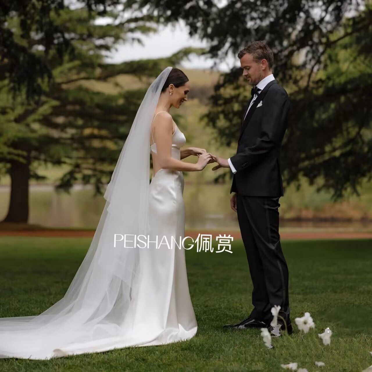 白色长层双层拖尾婚纱头纱婚礼旅拍素纱遮面款 新娘头纱 拍照造型款