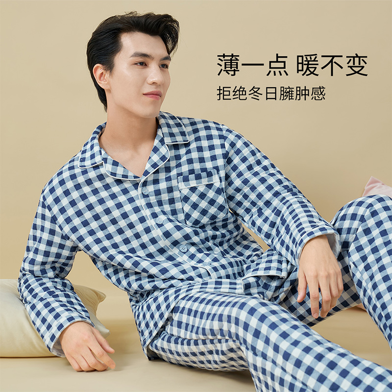 纯棉保暖男家居服套装 秋冬款 夹棉女厚睡衣2025新款 康妮雅情侣薄款