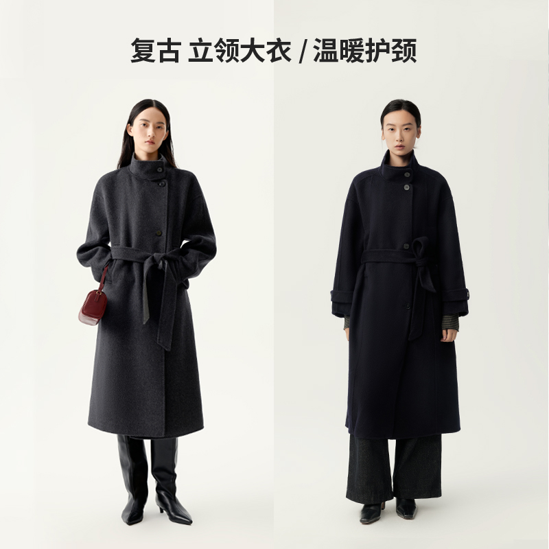 新款 2025冬季 秋水伊人优雅翻领毛呢外套 通勤大衣 100%绵羊毛