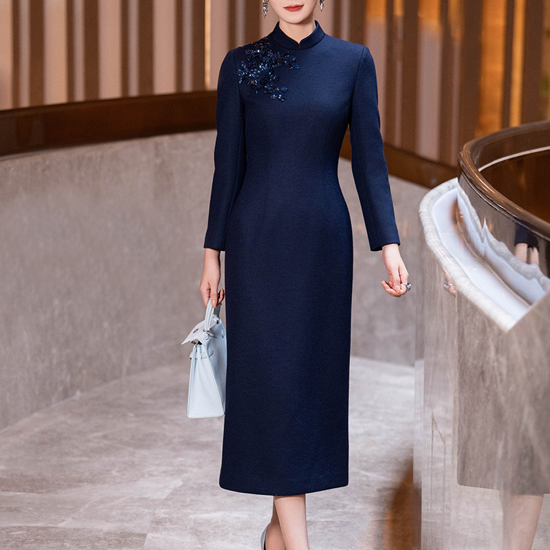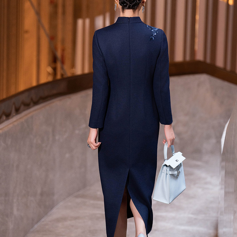 收腰风衣式 LYNEE 复古花纱羊毛中长款 精英感 连衣裙女 女总裁裙