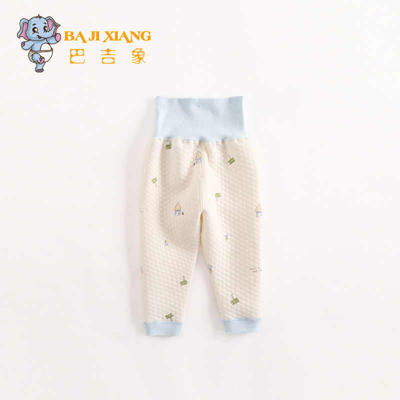 子 加厚纯棉保暖男女宝宝家居内衣长裤 巴吉象婴儿高腰护肚裤 秋冬季