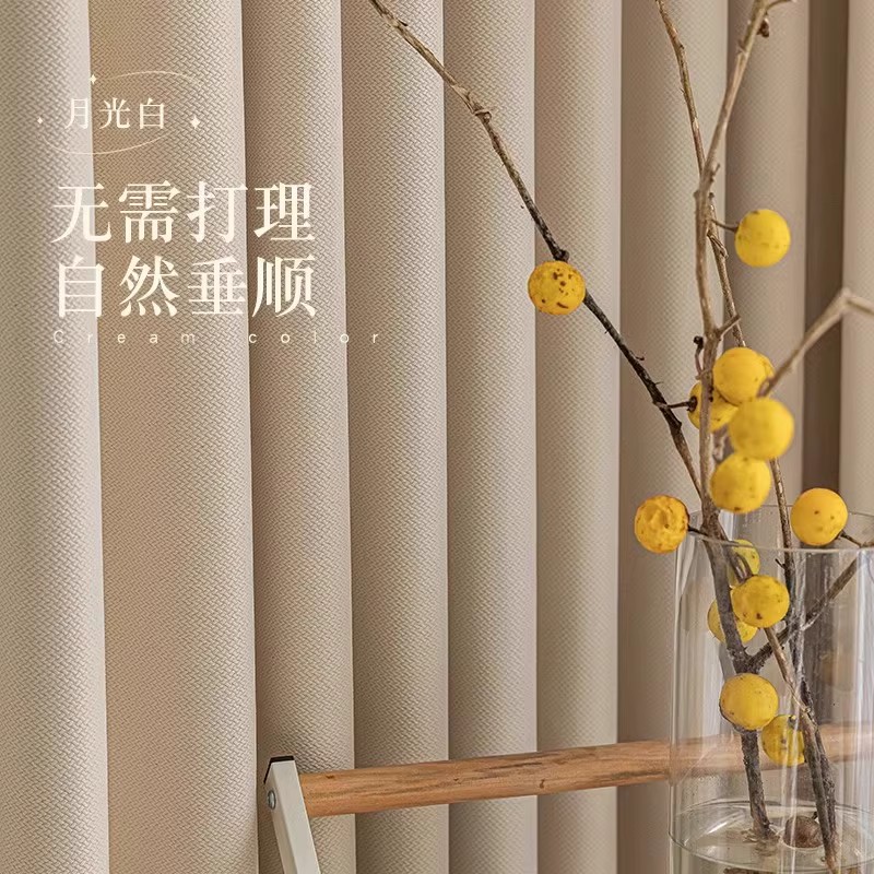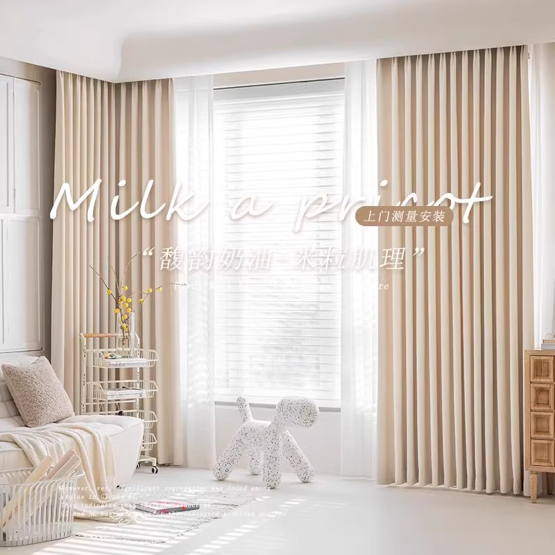 日式 客厅卧室阳台全遮光轻奢高级感遮阳布 棉麻窗帘奶油色2025新款