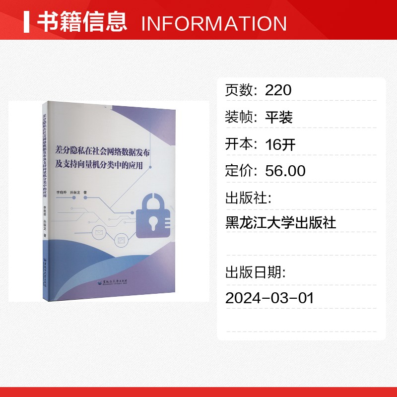 孙振龙 著 社会科学其它经管 差分隐私在社会网络数据发布及支持向量机分类中 新华书店正版 李晓晔 励志 图书籍 应用