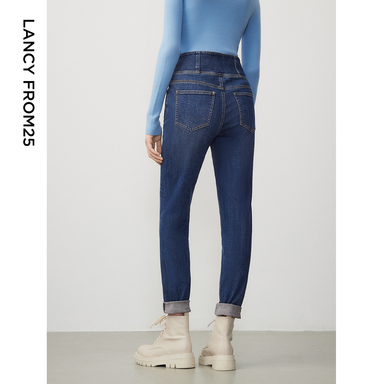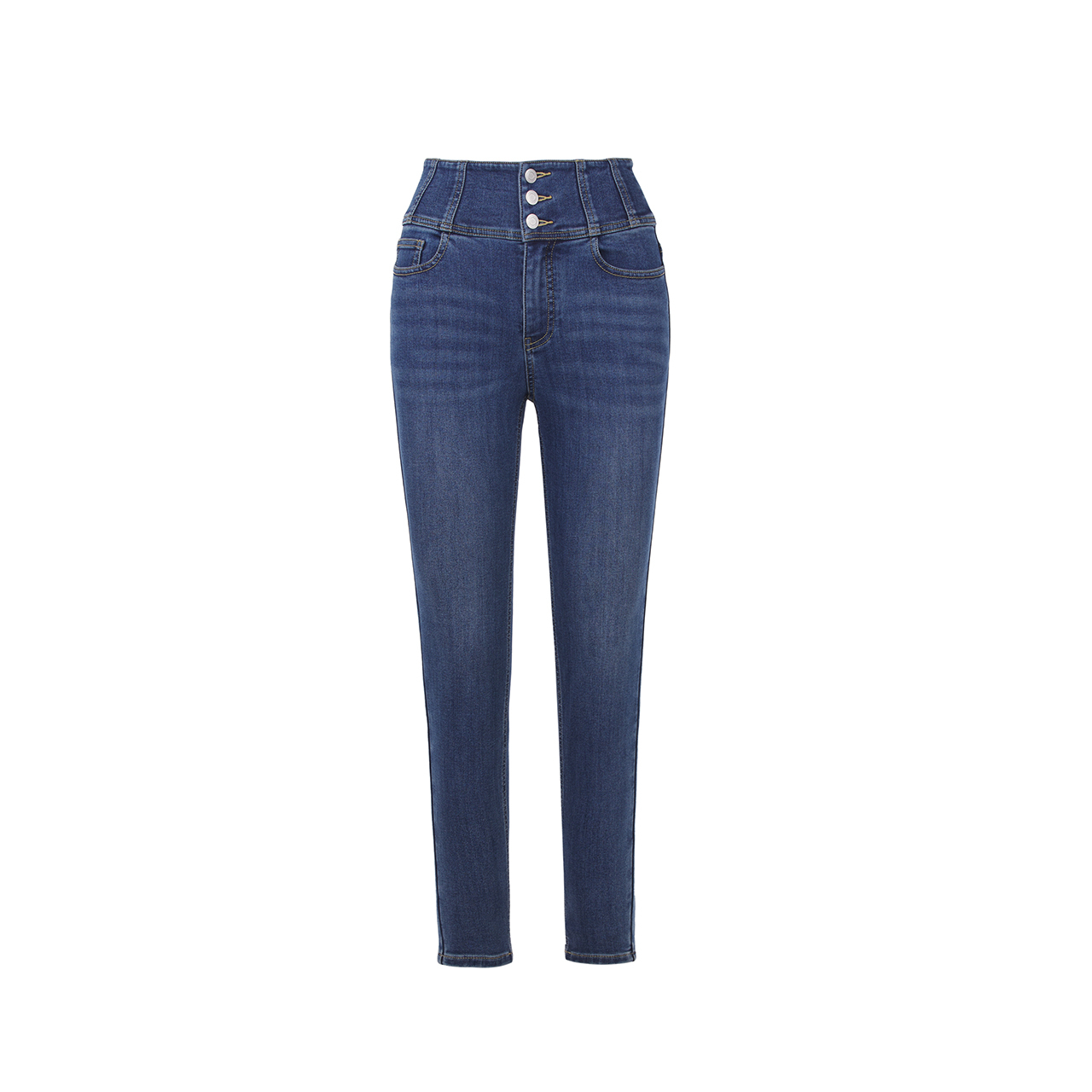 女05415301 牛仔长裤 佐丹奴牛仔裤 女原色洗水复古收褶半松紧腰薄款