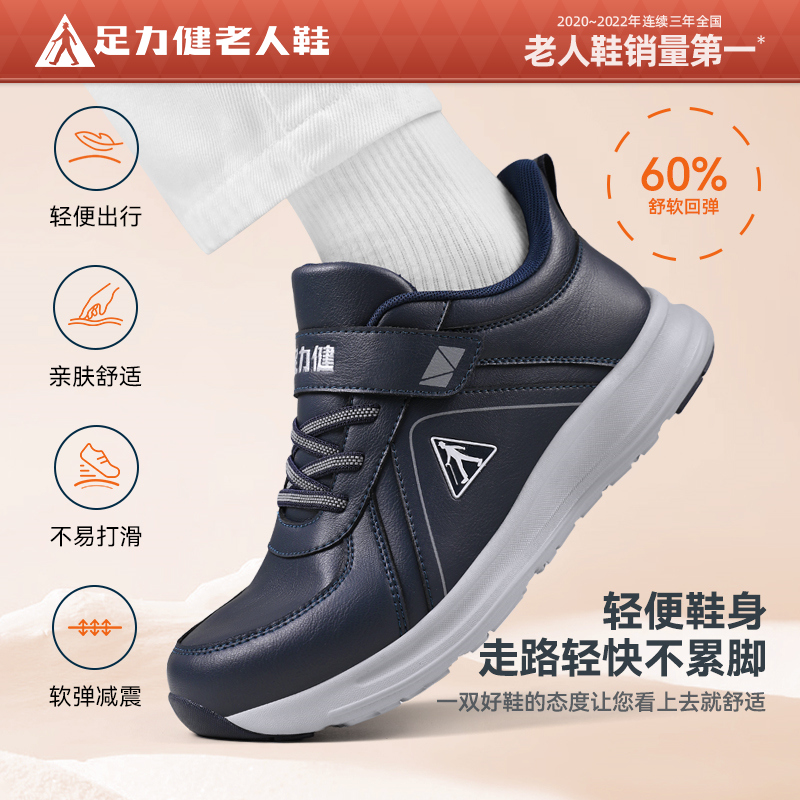 运动健步皮面男鞋 足力健老人鞋 秋季 中老年爸爸2025新款 旗舰店正品