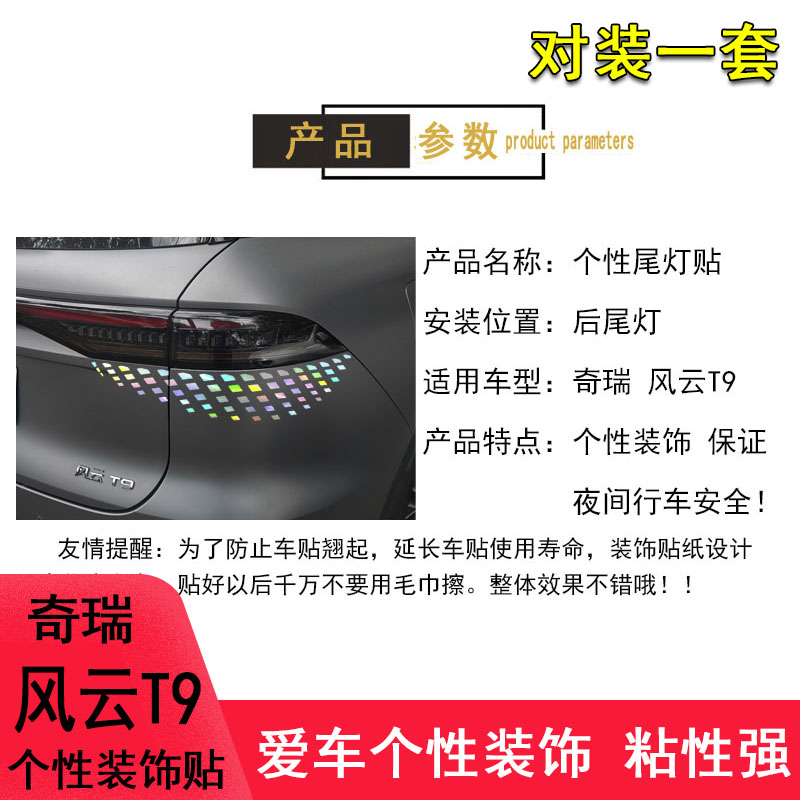 饰镭射车贴 车贴T9汽车用品装 专用于奇瑞风云T9后尾灯改装 车身个性