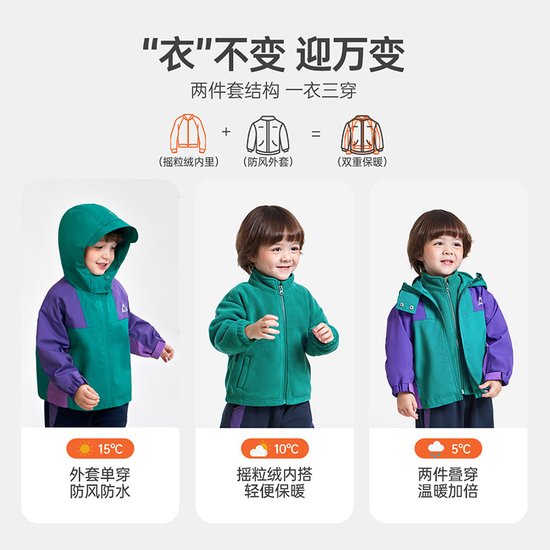 齐齐熊男童软壳衣冲锋外套三合一儿童2024宝宝防水上衣三防秋款