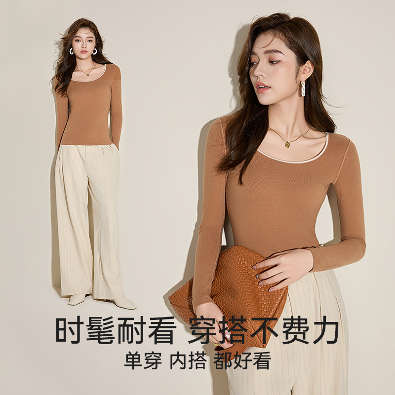 草本初色保暖上衣内搭打底女士秋冬长袖 带胸垫可外穿肌底衣打底衫