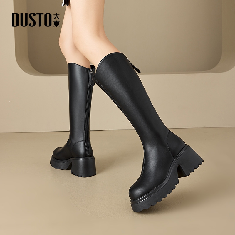 大东黑色长筒靴女春秋2025新款 靴子瘦瘦靴高筒骑士靴 今年流行爆款