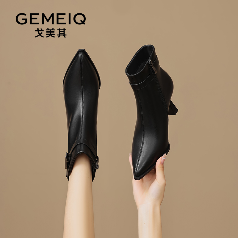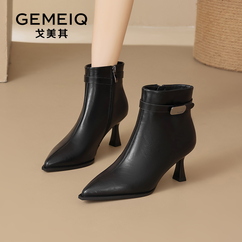细跟瘦瘦靴 靴单靴气质尖头法式 戈美其高跟短靴女2024秋冬新款 时装
