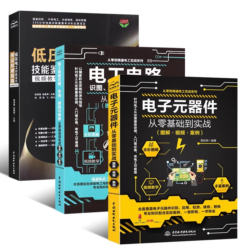 全3册 低压电工技能鉴定考证权威指南自学水电工安装 图解电子元 电工电路识图布线接线与维修 教材教程书籍 器件从零基础到实战 正版