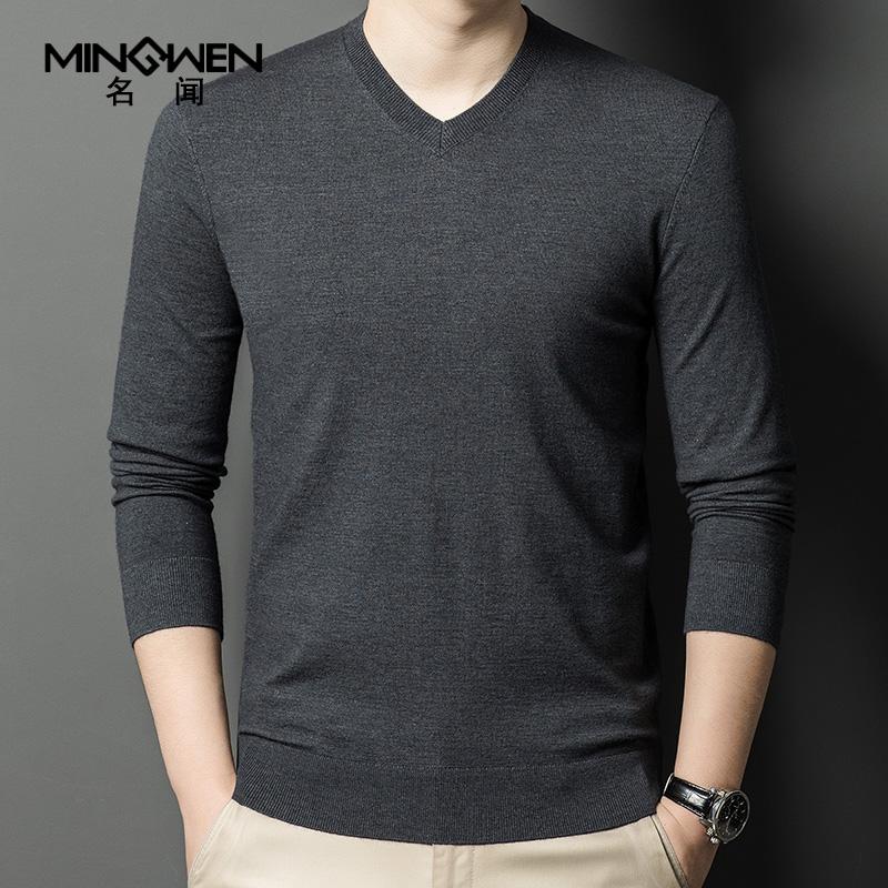 长袖 休闲纯色宽松打底含羊毛针织衫 t恤 潮流韩版 V领毛衣男春秋薄款