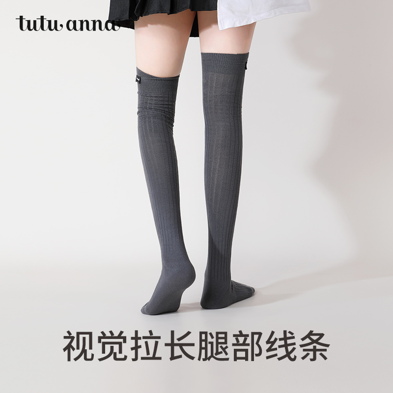 过膝袜子女秋冬款 纯棉纱线长筒袜加长保暖高筒防滑护膝大腿袜春秋