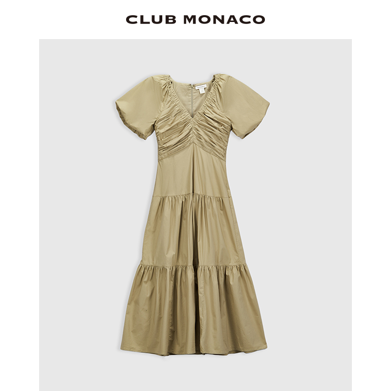 夏季 菲梦伊绿色花朵连衣裙女短袖 收腰V领A字大摆裙 直播专享